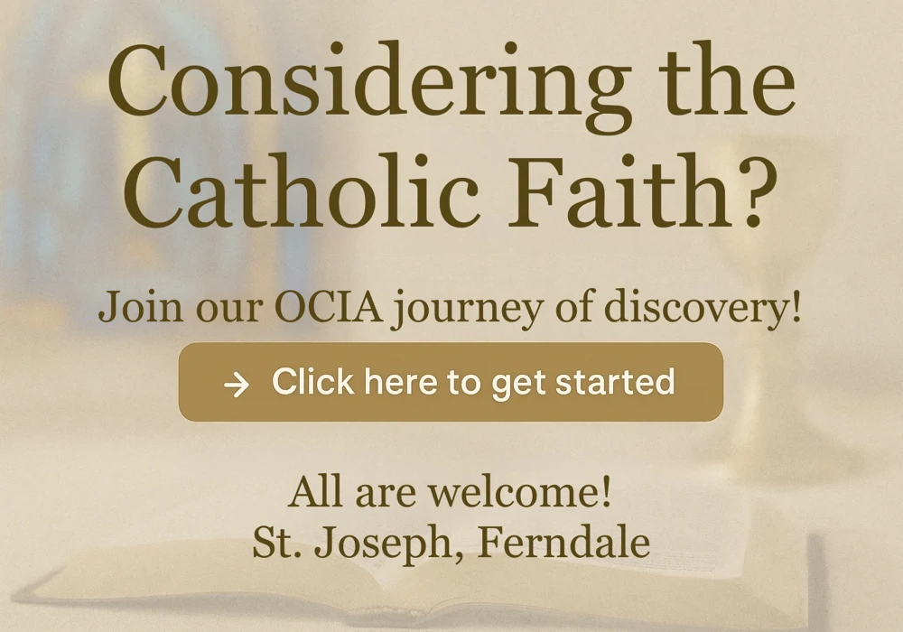 If you are considering becoming Catholic, we invite you to learn how to begin your Catholic faith journey, register for classes below, or reach out to Sharon Patrick at [email protected] to get started.